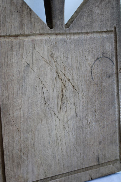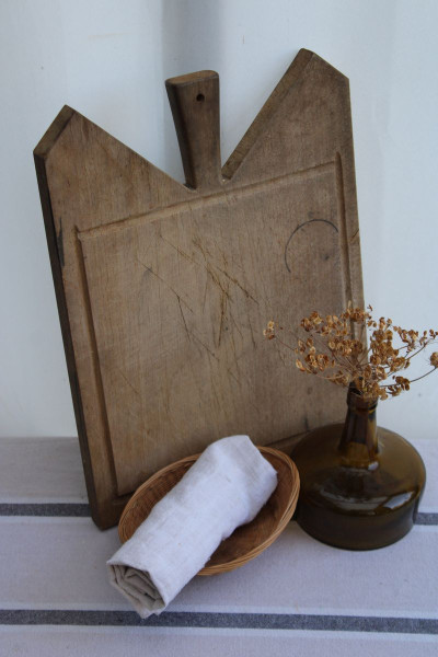 Avec sa forme architecturale, cette ancienne planche à découper en bois est particulièrement réussie ! Son aspect brut et sa matière naturelle apporteront un beau rendu déco et un côté fonctionnel dans une cuisine!