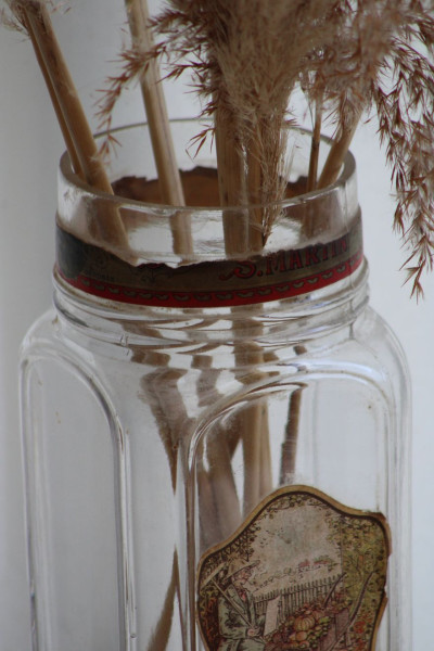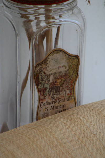 Avec son étiquette d'origine, cet ancien bocal à confiserie en verre raconte un souvenir. Il rappelle les épiceries d'autrefois avec leurs vitrines décorées devant lesquelles les enfants s'extasiaient. Il viendra compléter une collection ou simplement s'exposer fièrement sur une étagère de cuisine !