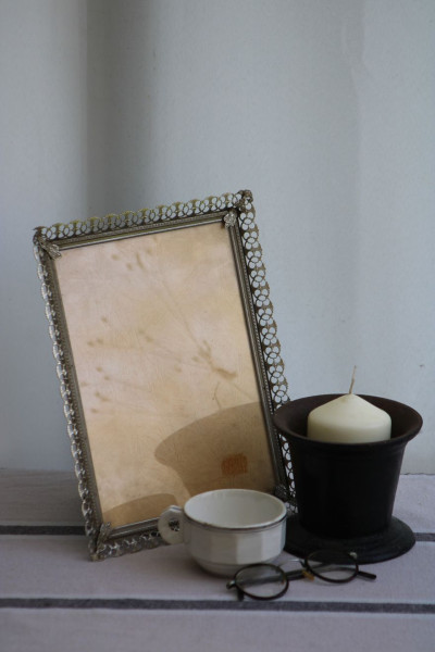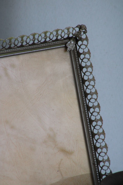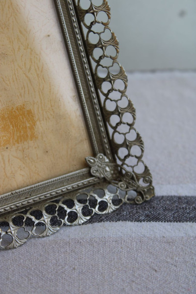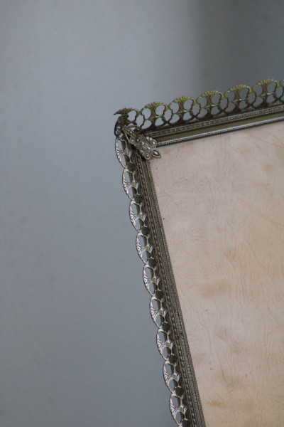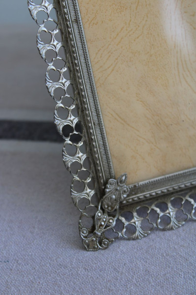 Monté sur un pied, ce cadre en métal argenté cumule les atouts esthétiques. Le contour du cadre crée l'effet d'une dentelle délicatement ouvragée apportant style et élégance. Ce cadre viendra mettre en valeur le portrait d'un être cher tout en délicatesse !