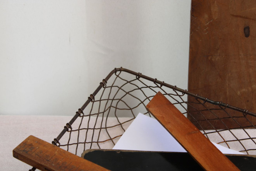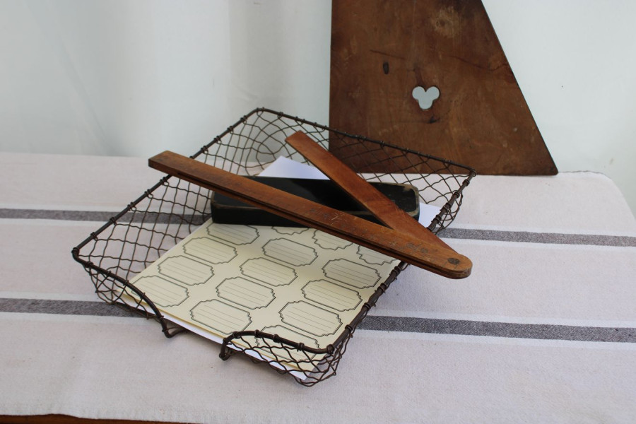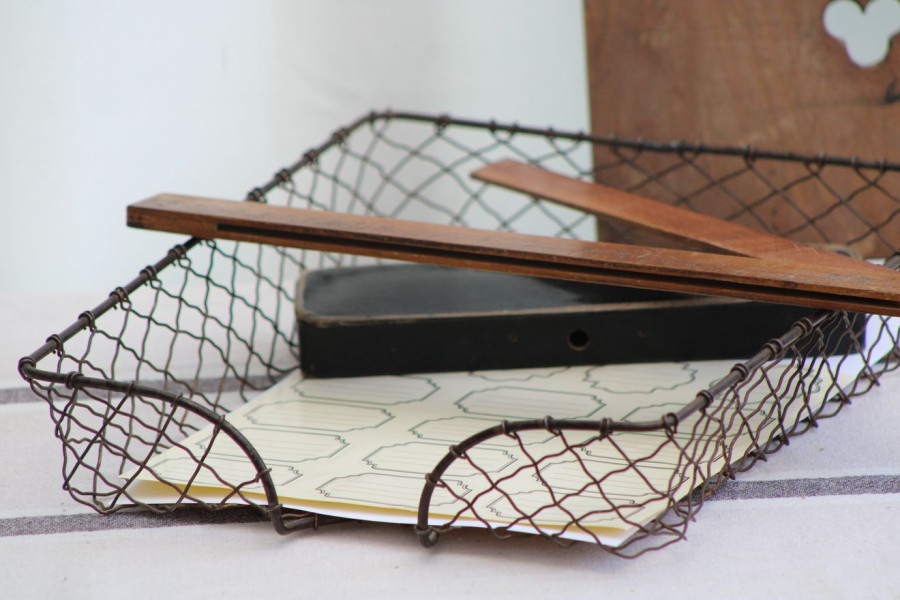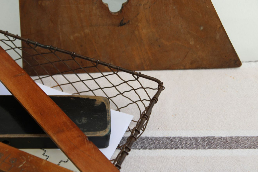 Avec son quadrillage métallique, cette ancienne bannette est la solution idéale pour tout ranger. Légère, elle fera forte impression posée sur une table de travail tout en recréant un esprit industriel!