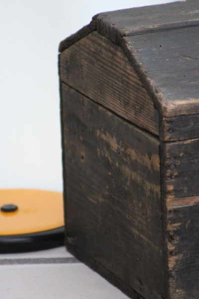 Munie d'une poignée de transport d'origine, cette ancienne caisse à outils en bois a su conserver son cachet d'origine. Sa silhouette géométrique et sa teinte noire patinée par le temps apportent un charme désuet et authentique. Cette caisse s'imposera à coup sûr dans un intérieur tout en offrant une opportunité de rangement original !