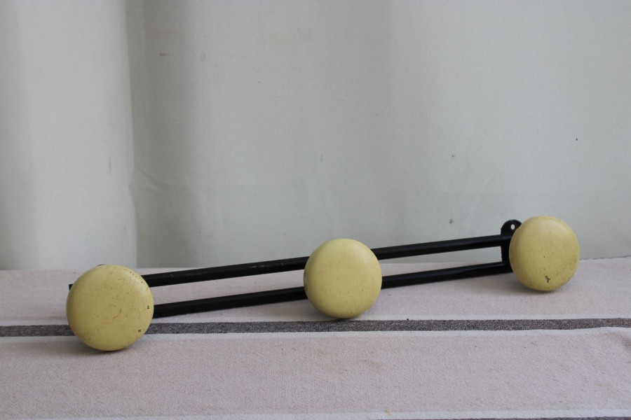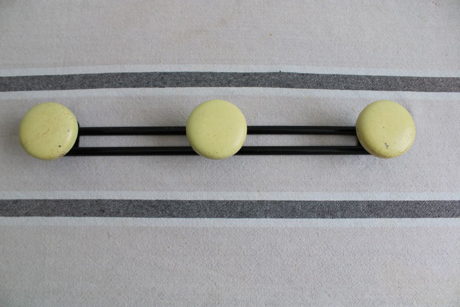 Composé de trois patères, ce porte-manteaux en métal apporte une note ensoleillé. La teinte jaune de chaque portant vient adoucir l'ensemble et contribue à un supplément de légèreté. Cet élément viendra égayer un mur afin de coller au plus près de l'esprit vintage !