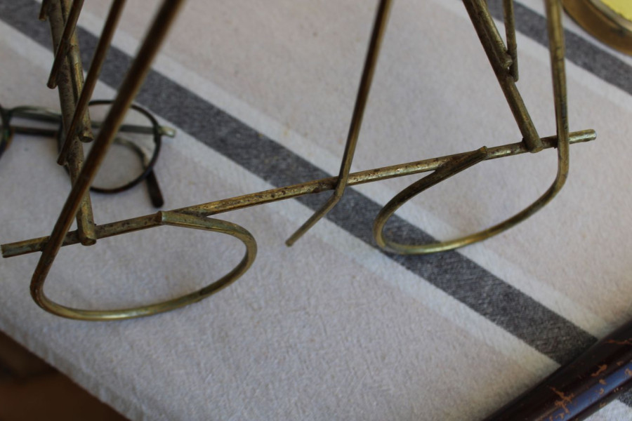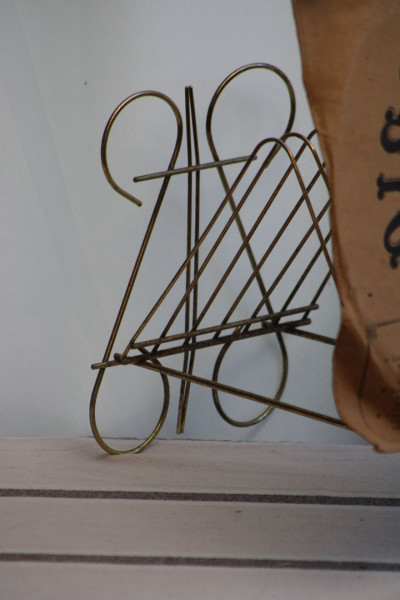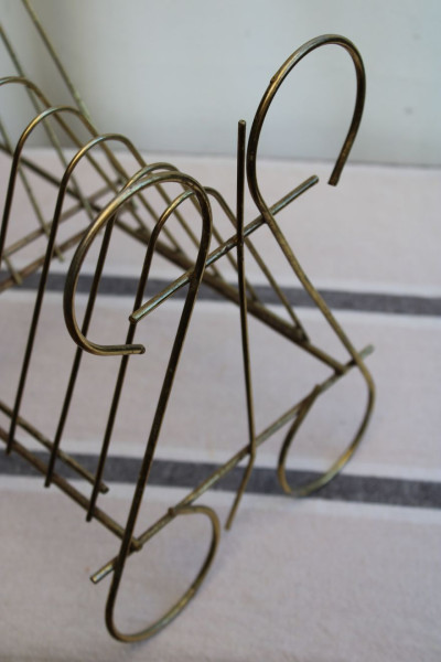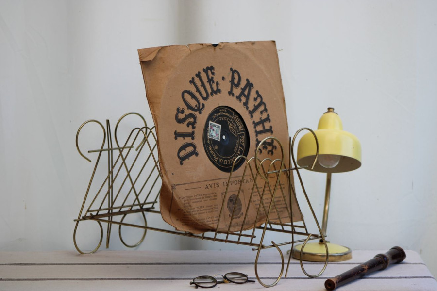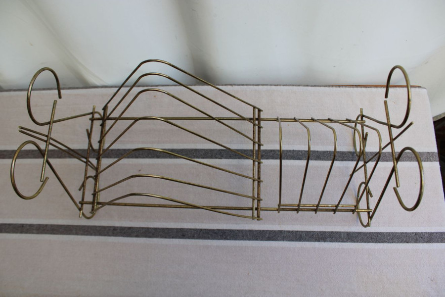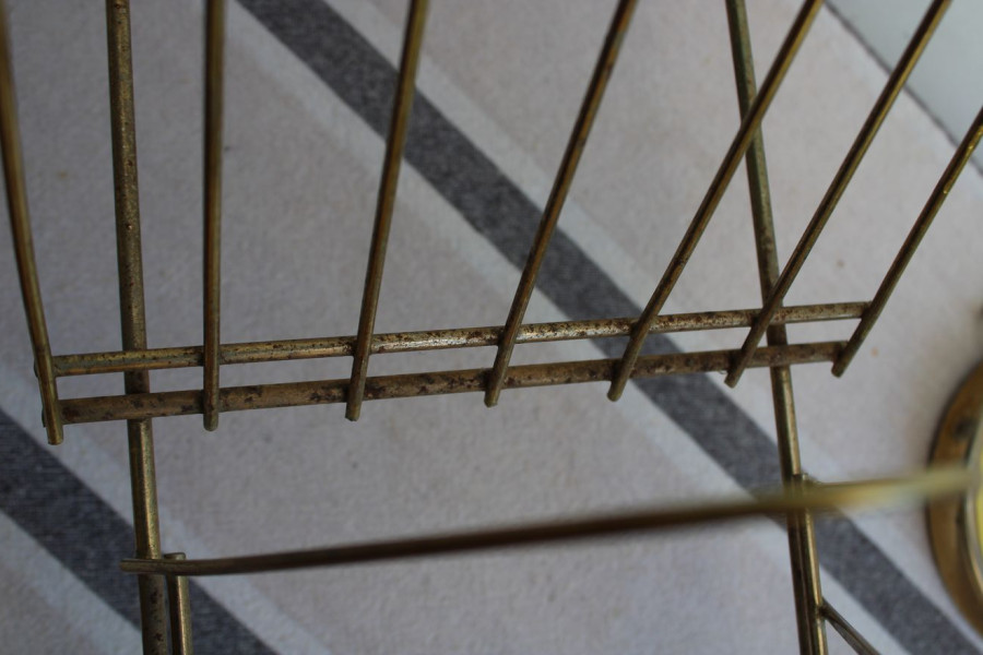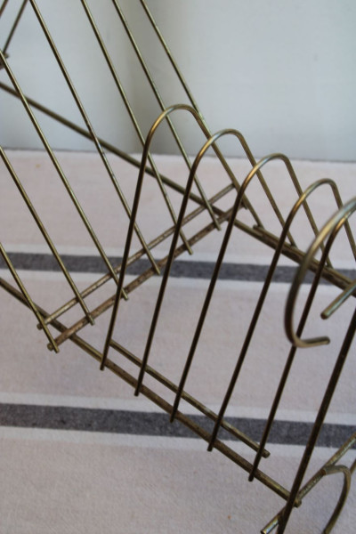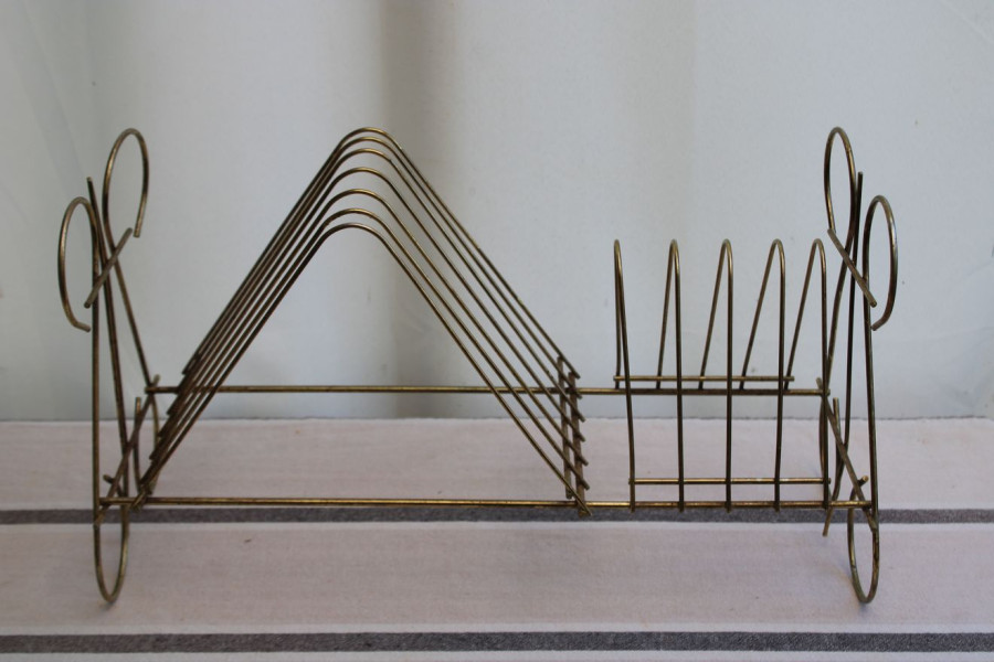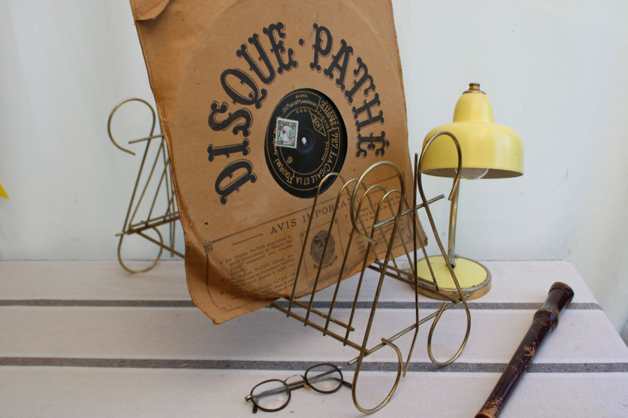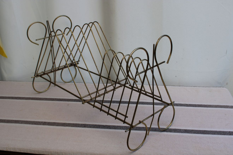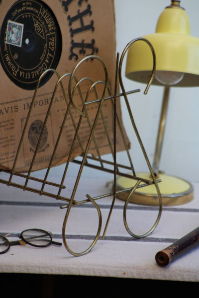 SENS DU DETAIL POUR CET ANCIEN PORTE-VINYLES EN METAL DORE !